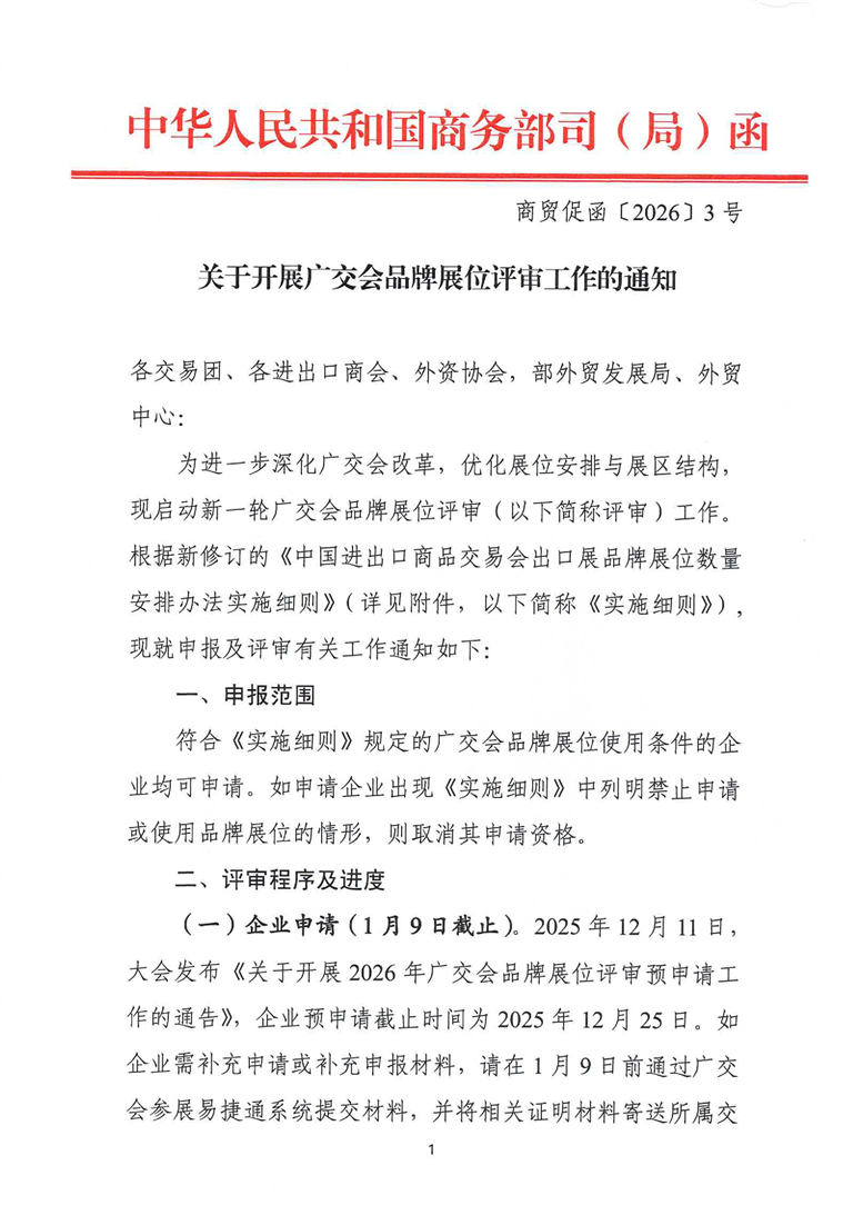 转发商务部外贸司《关于开展广交会品牌展位评审工作的通知》