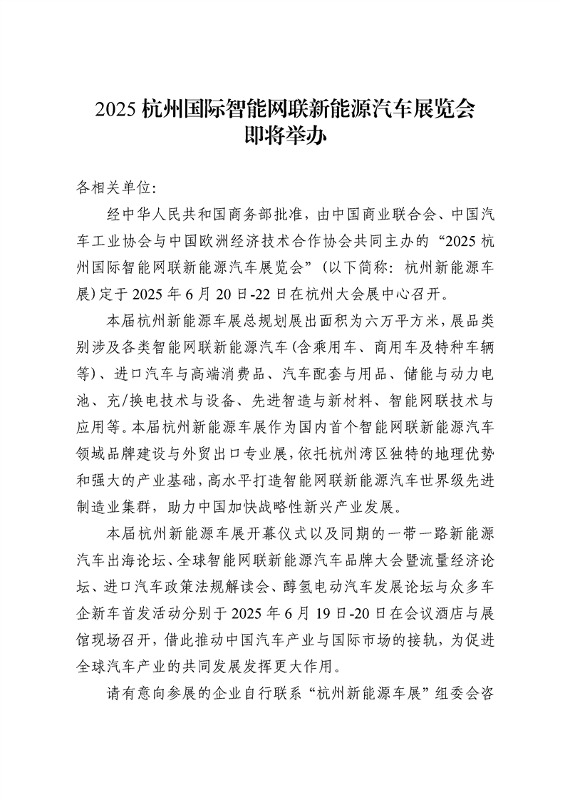 2025杭州国际智能网联新能源汽车展览会即将举办