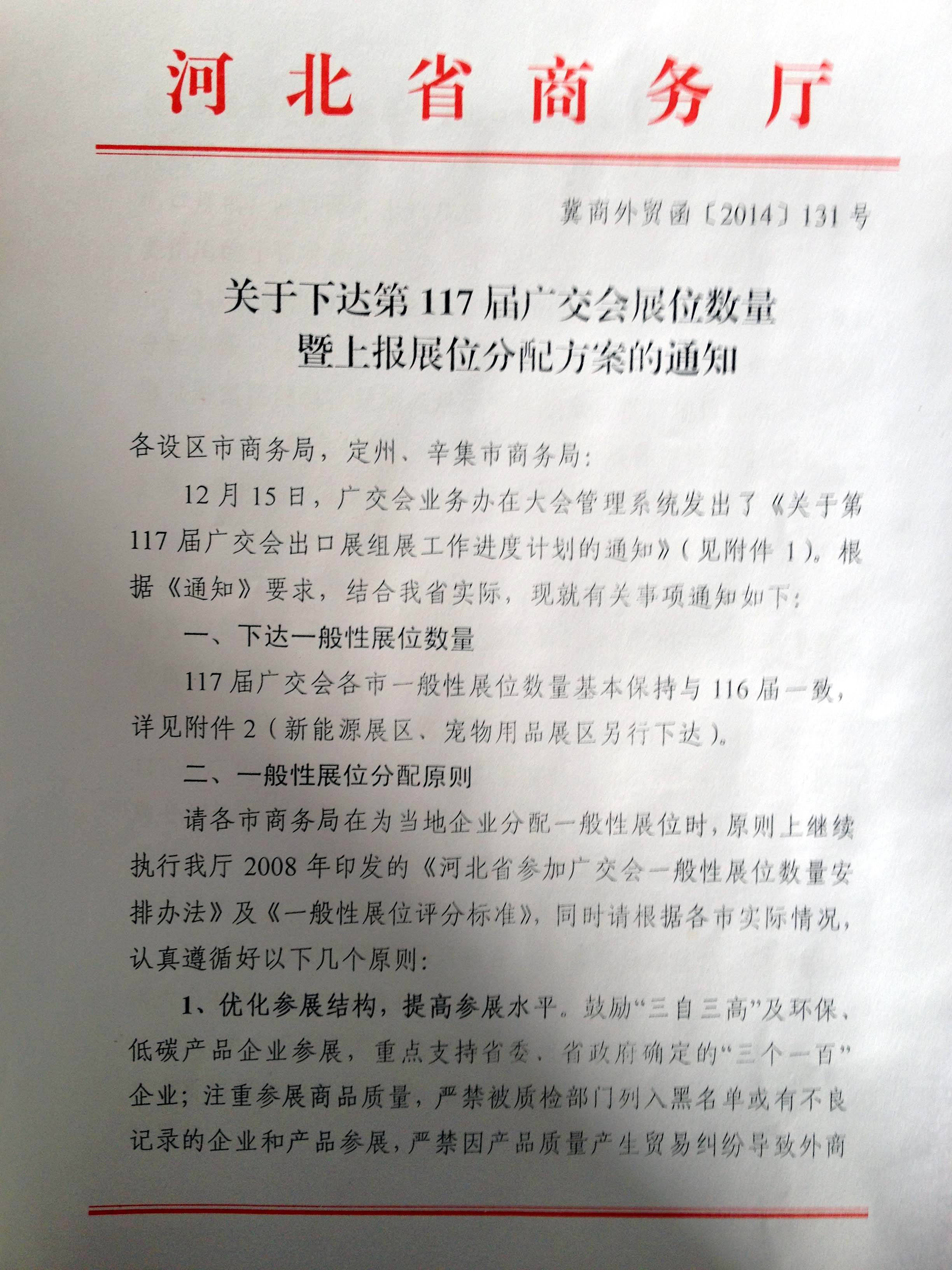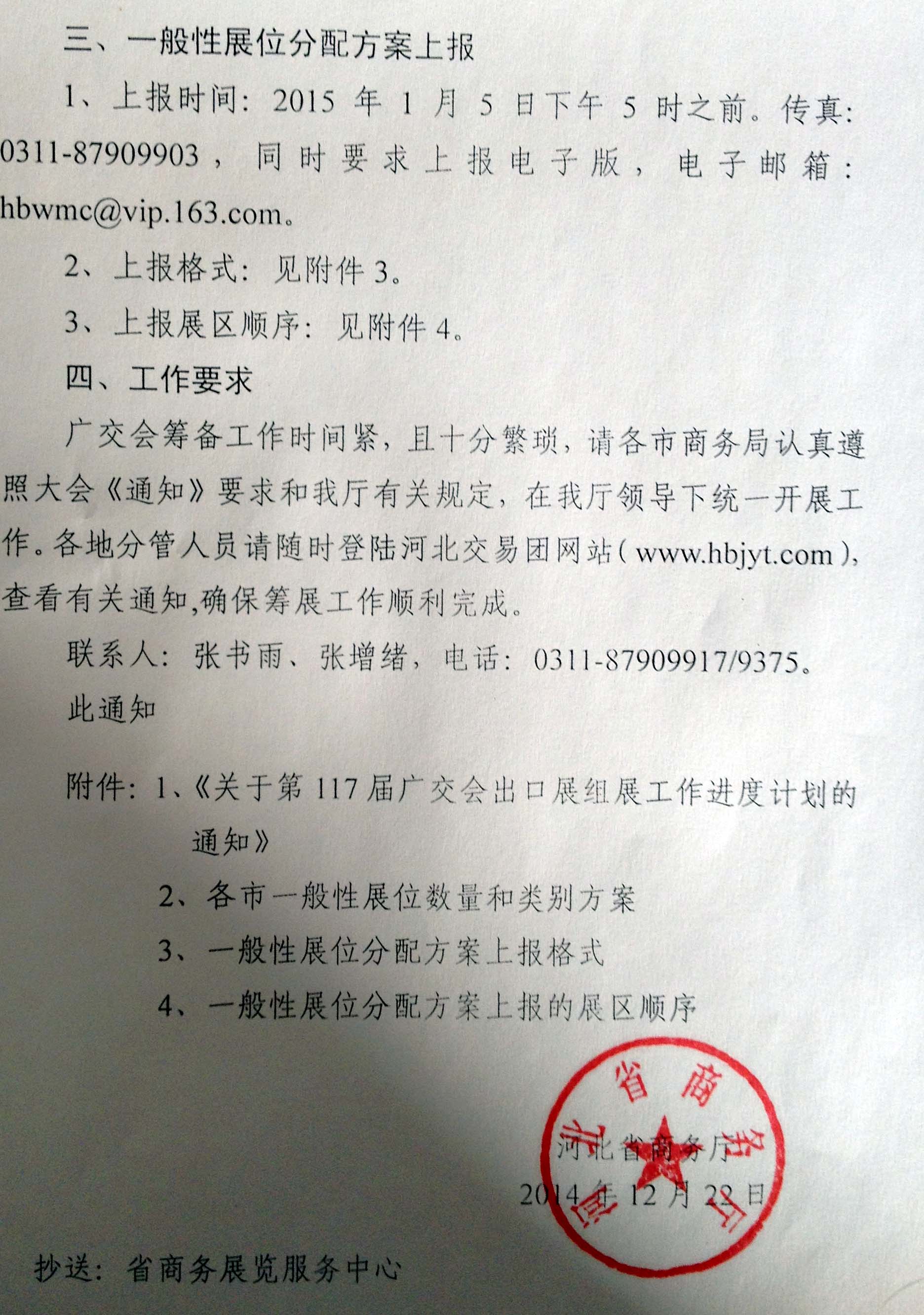 (扫描版)关于下达第117届广交会展位数量暨上报展位分配方案的通知