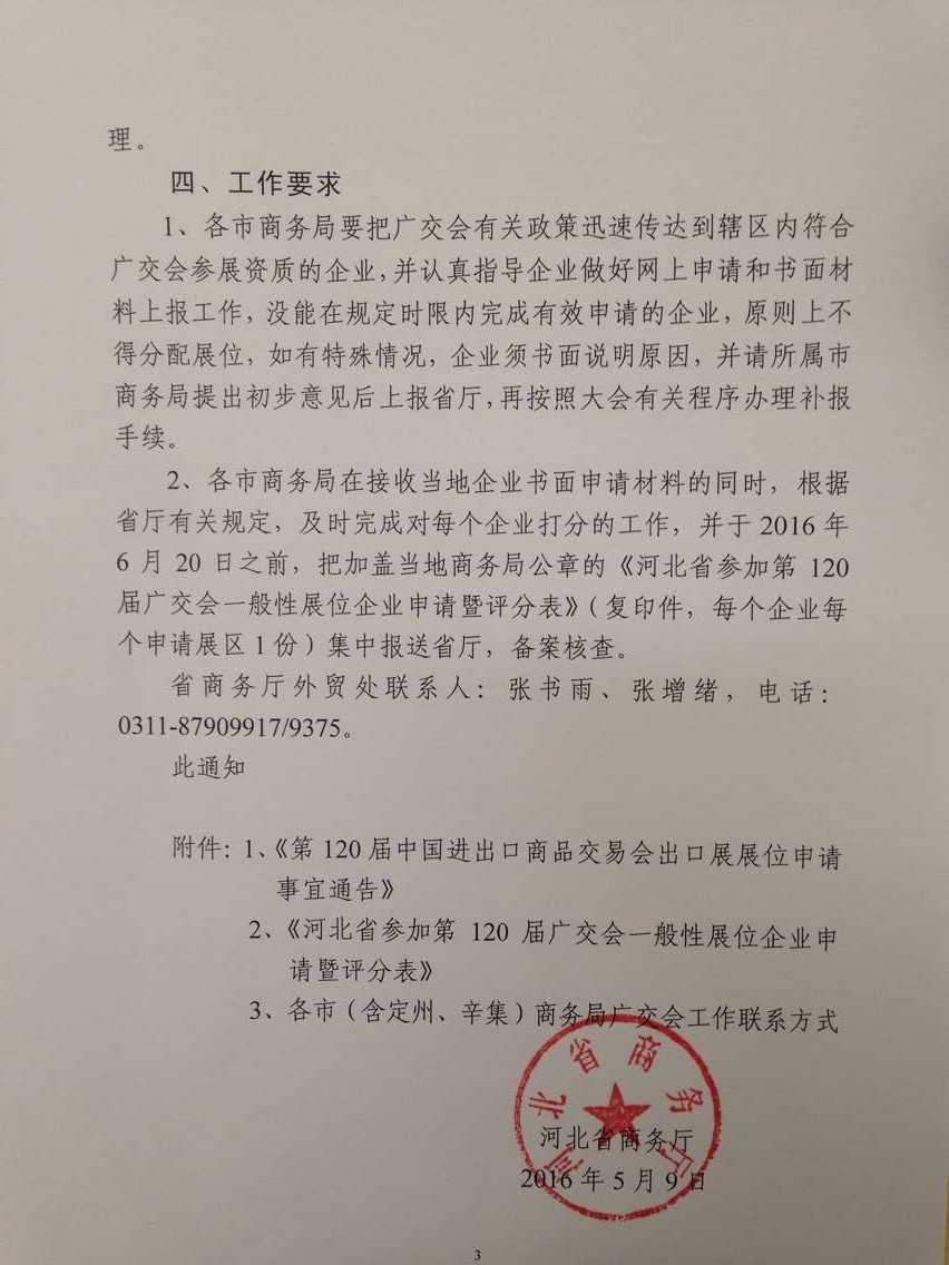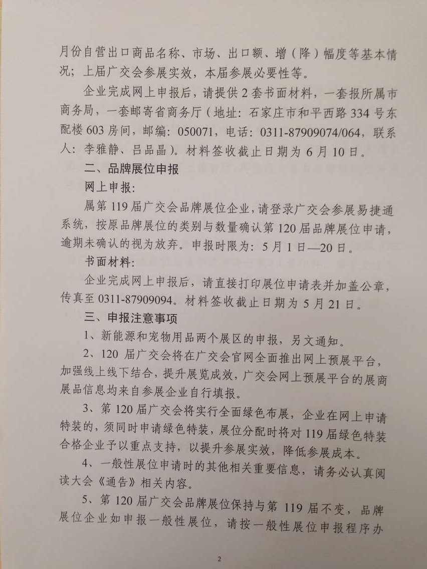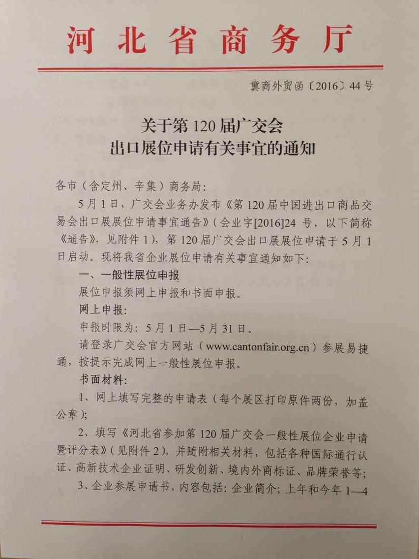 关于第120届广交会出口展位申请有关事宜的通知扫描件