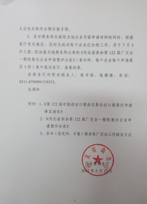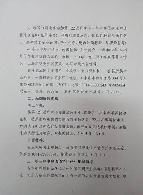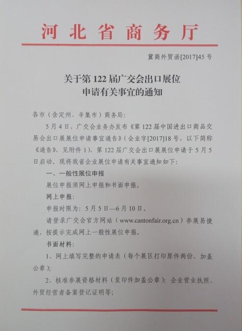关于第122届广交会出口展位申请有关事宜的通知-扫描件