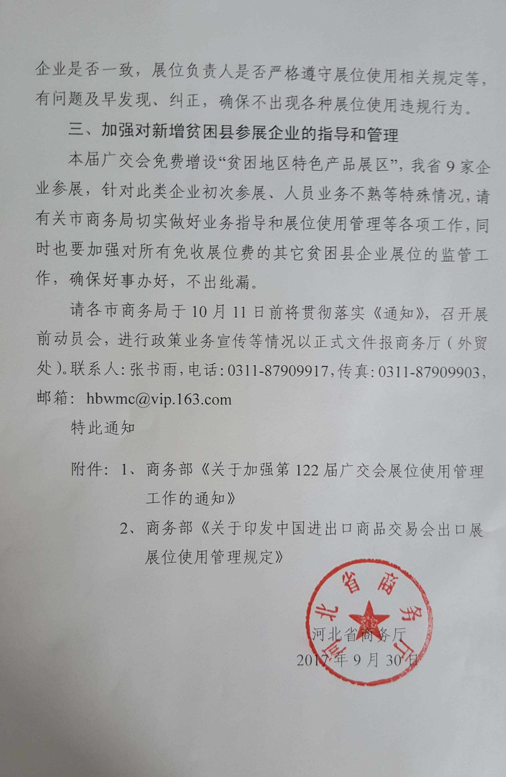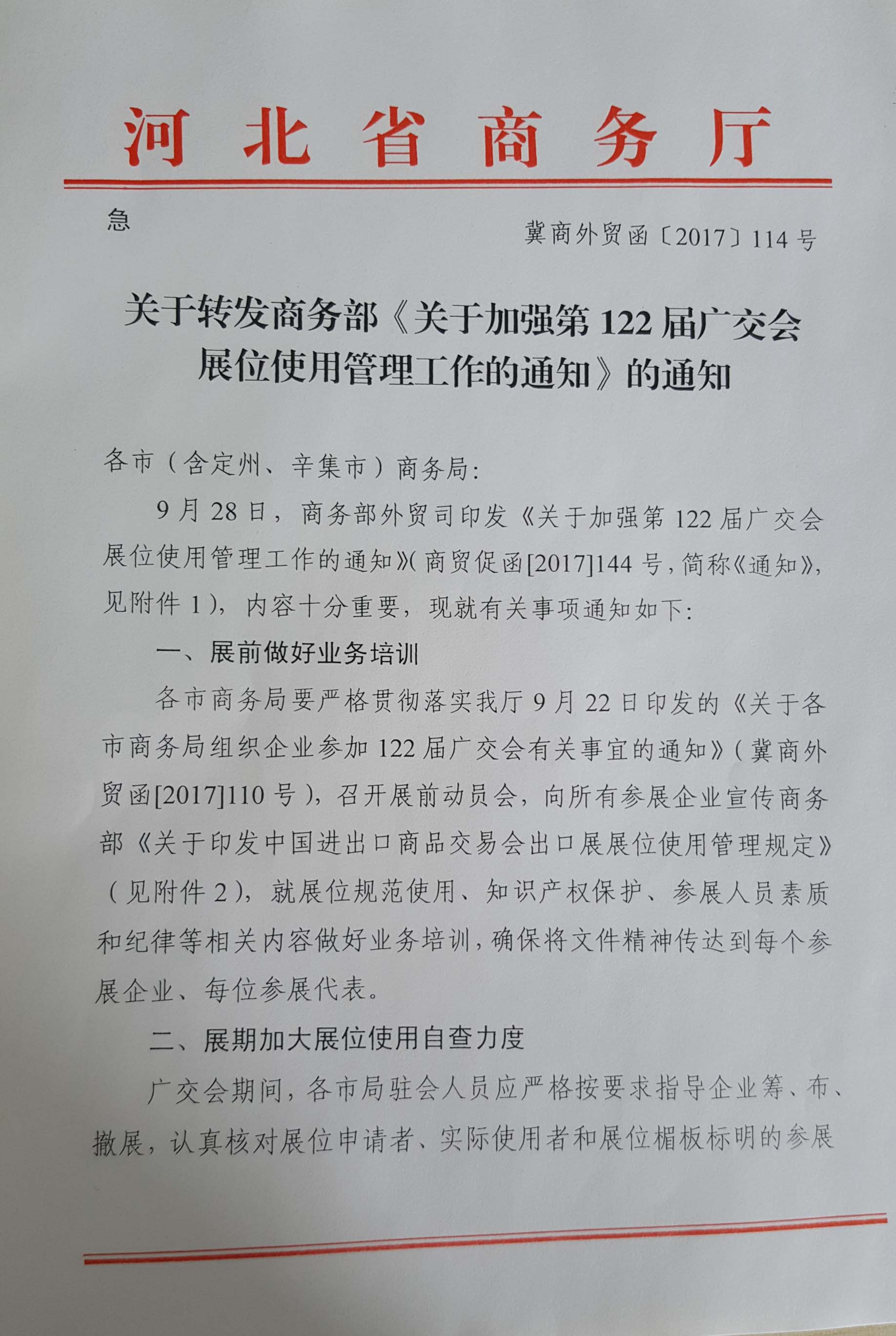 关于转发商务部《关于加强第122届广交会展位使用管理工作的通知》的通知-扫描