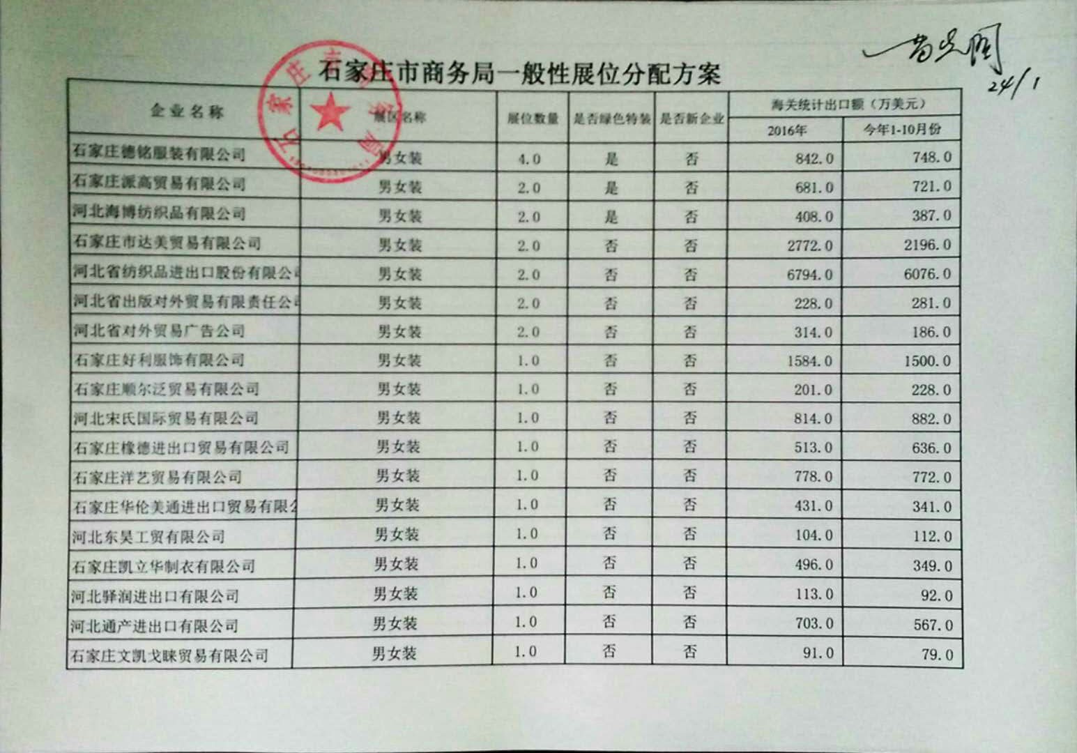 石家庄市男女装、运动休闲服展区展位分配方案公示