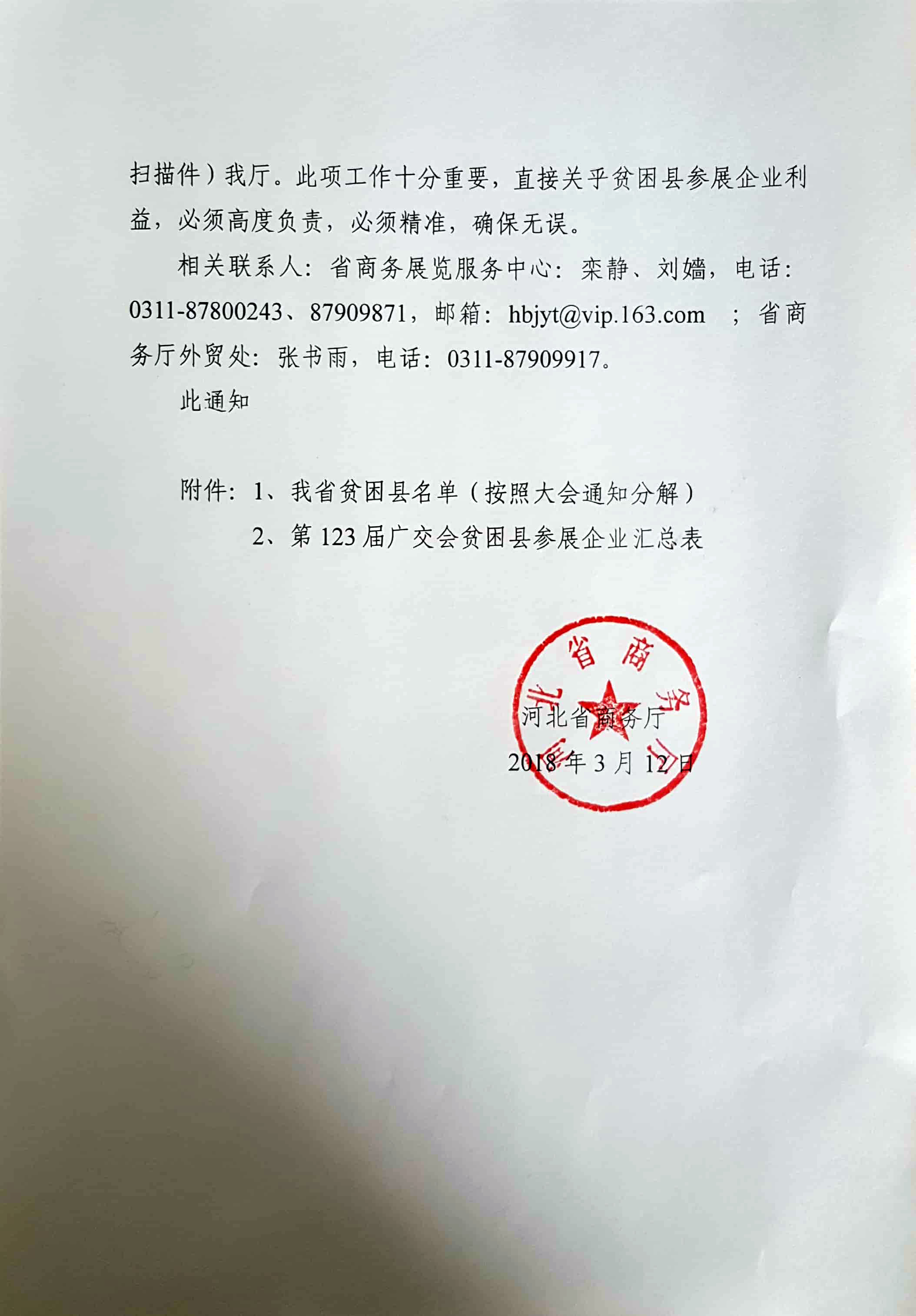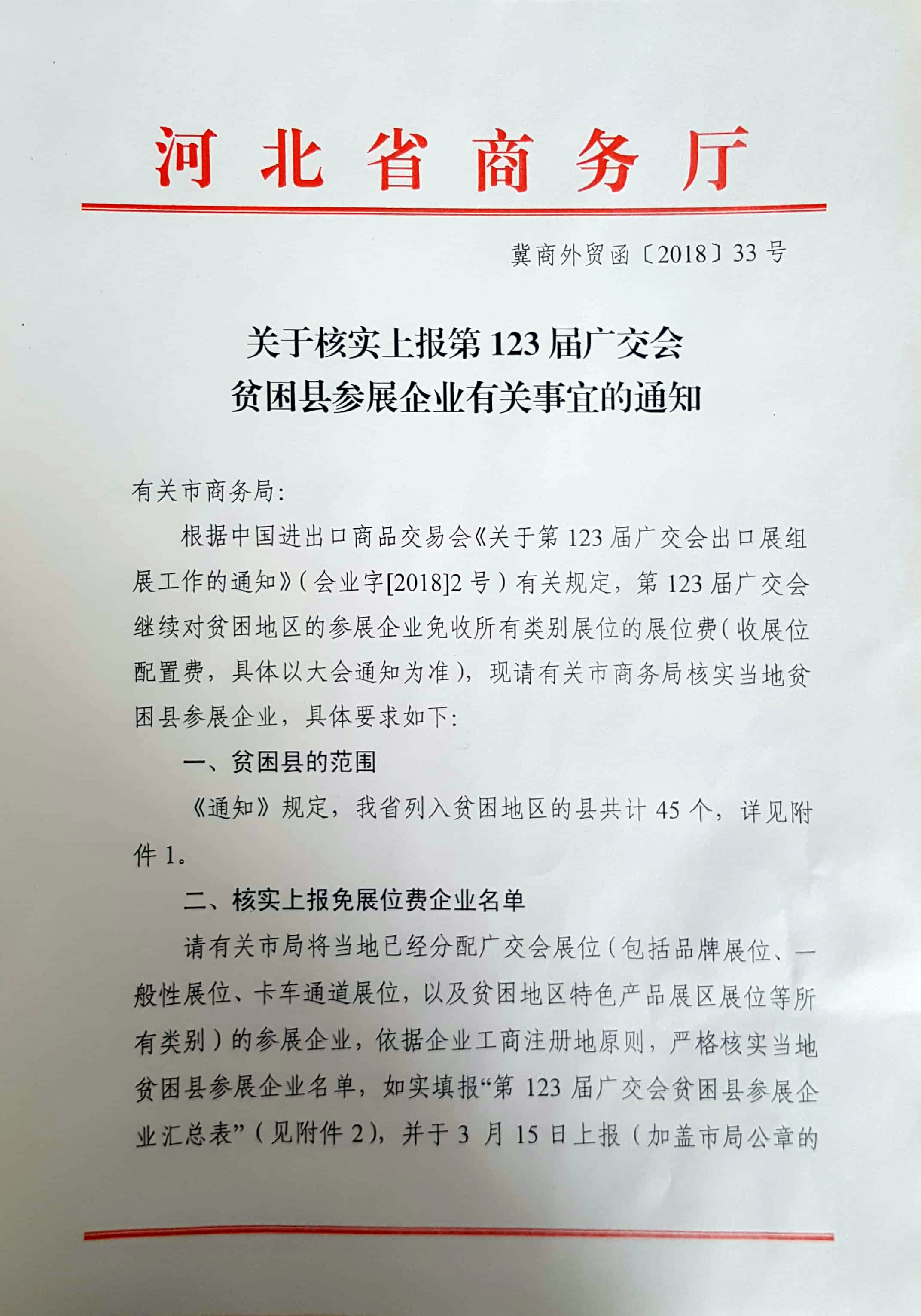 关于核实上报第123届广交会贫困县参展企业有关事宜的通知-扫描版
