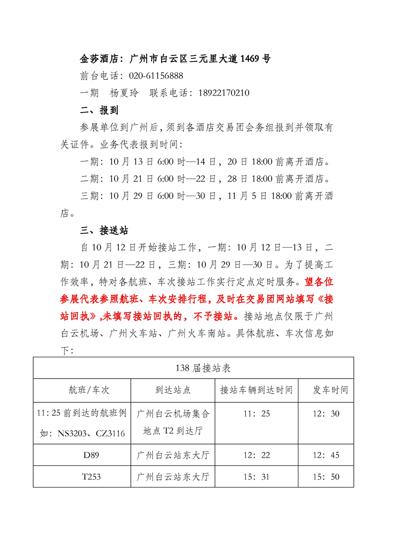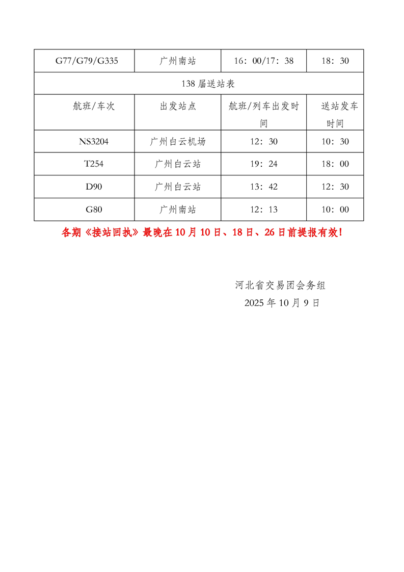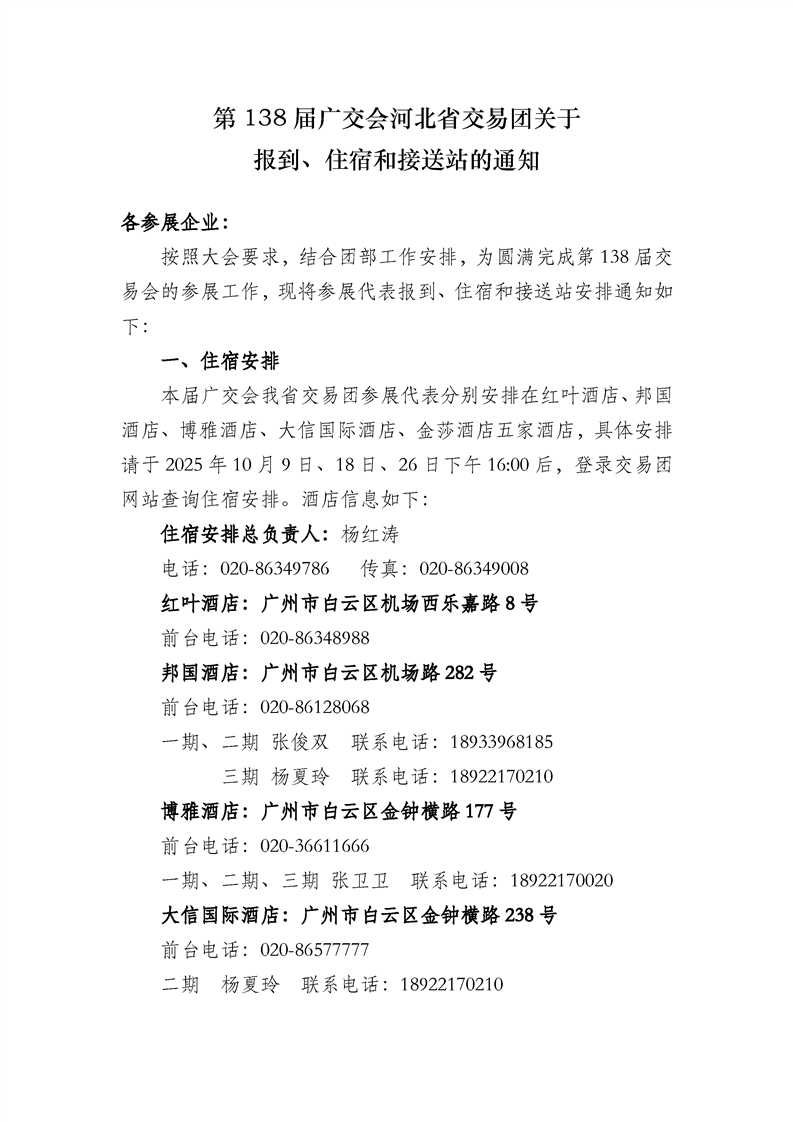 第138届广交会河北省交易团关于报到、住宿和接送站的通知