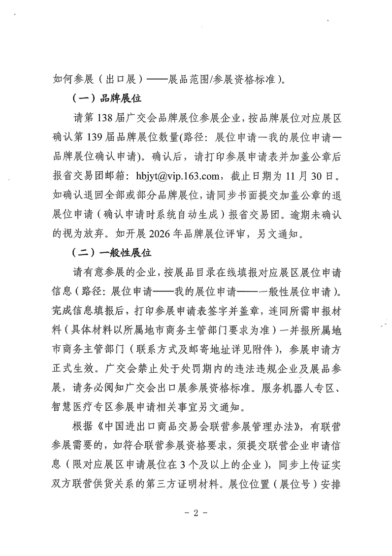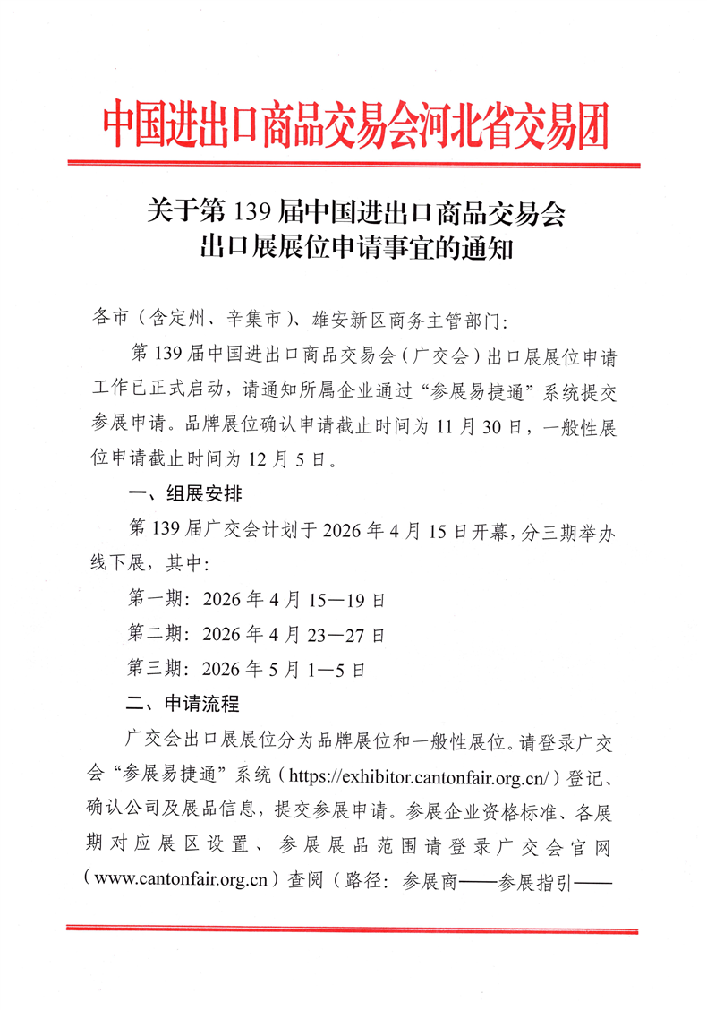 关于第139届中国进出口商品交易会出口展展位申请事宜的通知