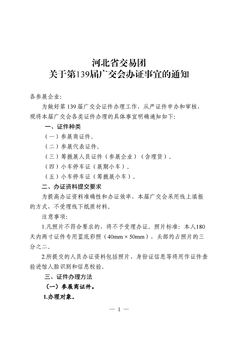 河北省交易团关于第139届广交会办证事宜的通知