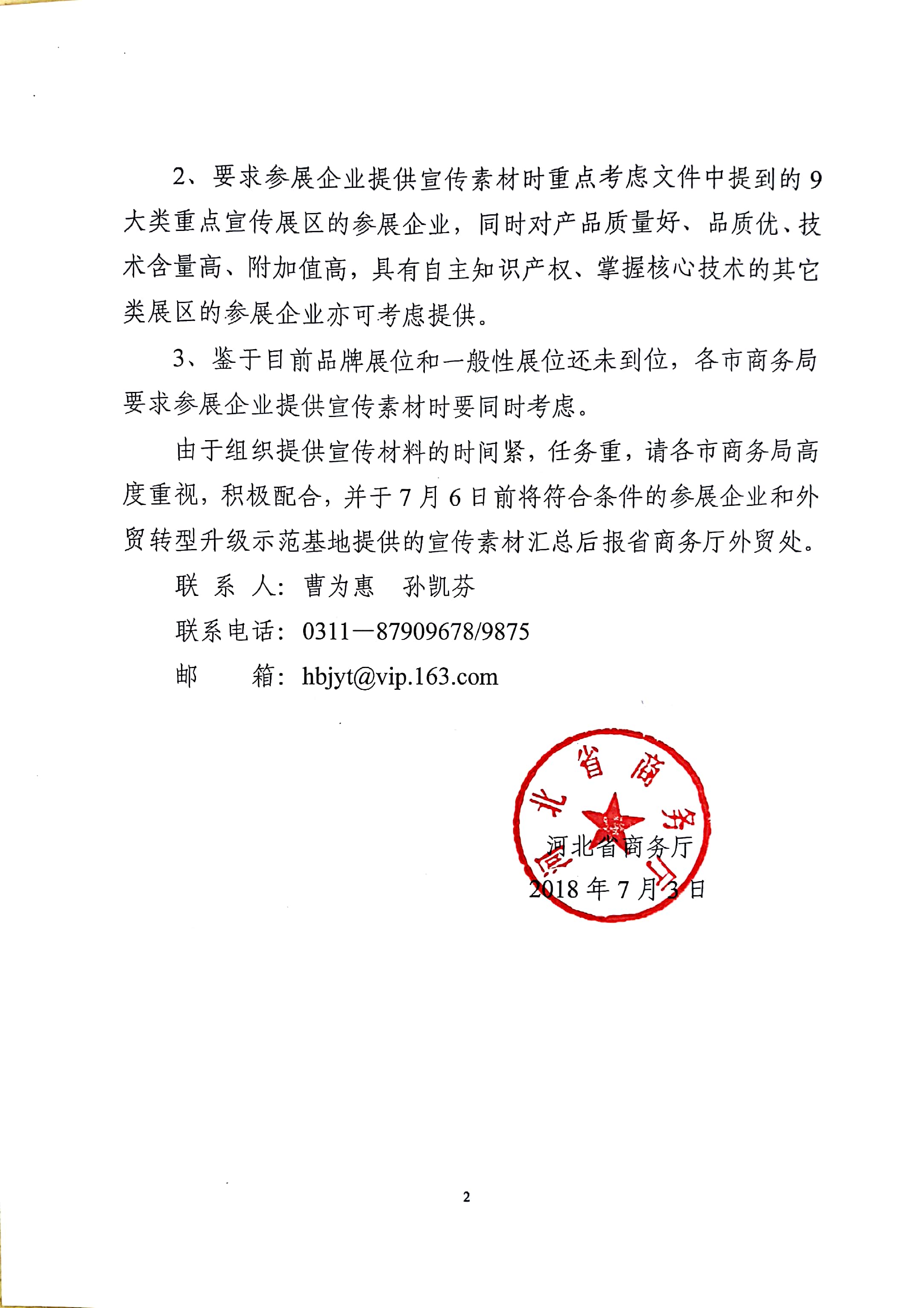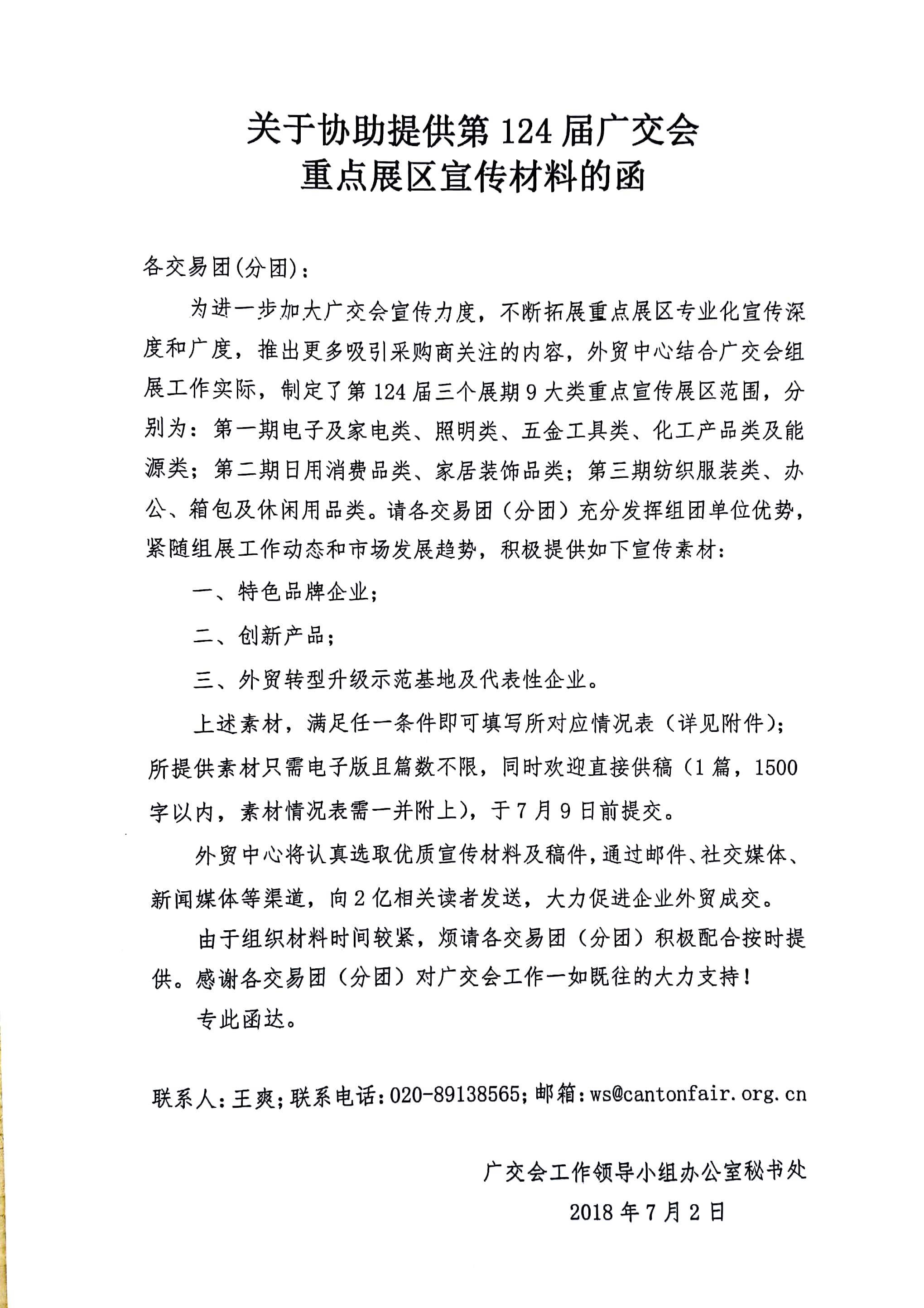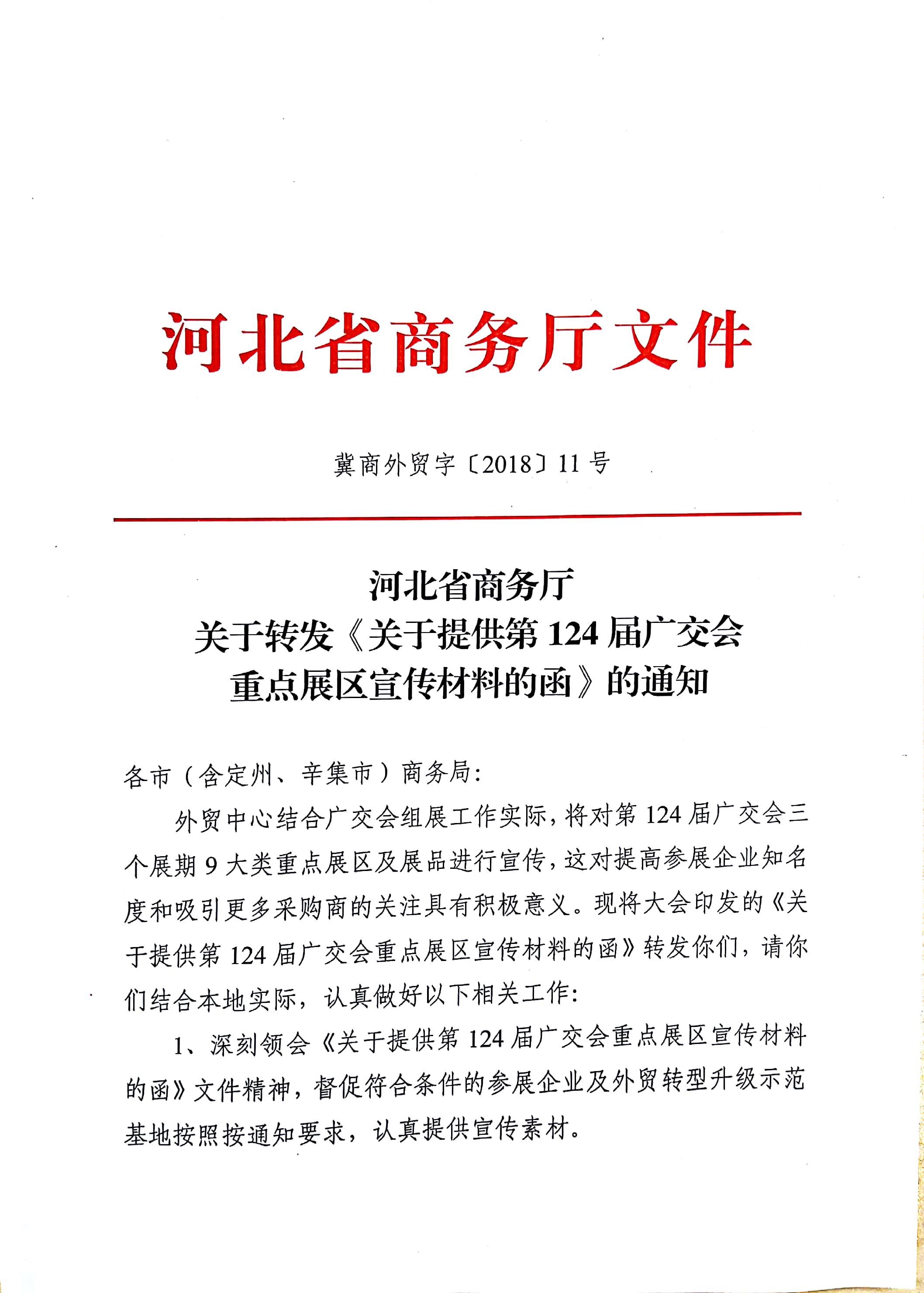 0703河北省商务厅关于转发《关于提供第124届广交会重点展区宣传材料的函》的通知