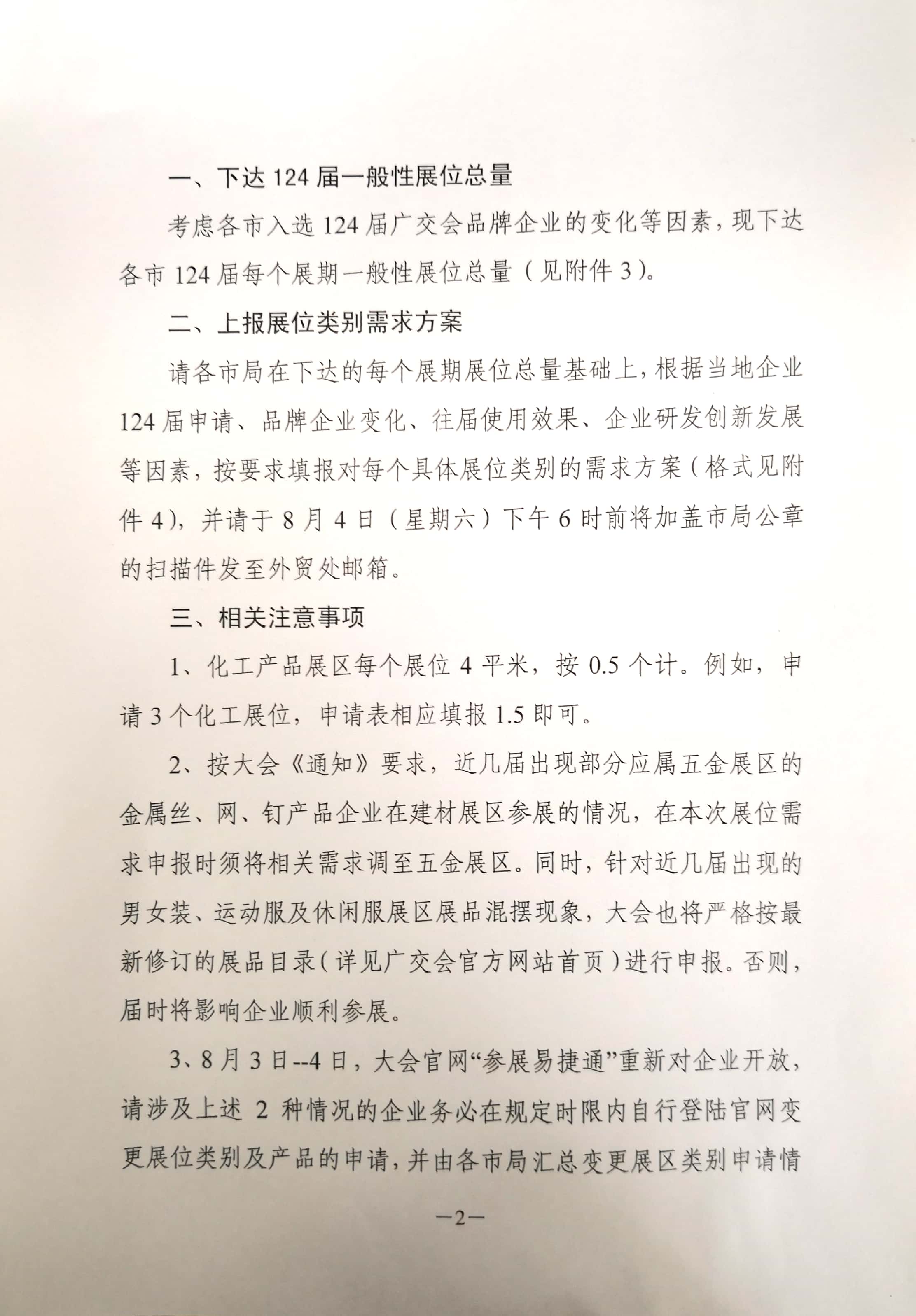 附件:1、关于开展第124届广交会一般性展位需求申报工作和企业补充申请的通知.pdf